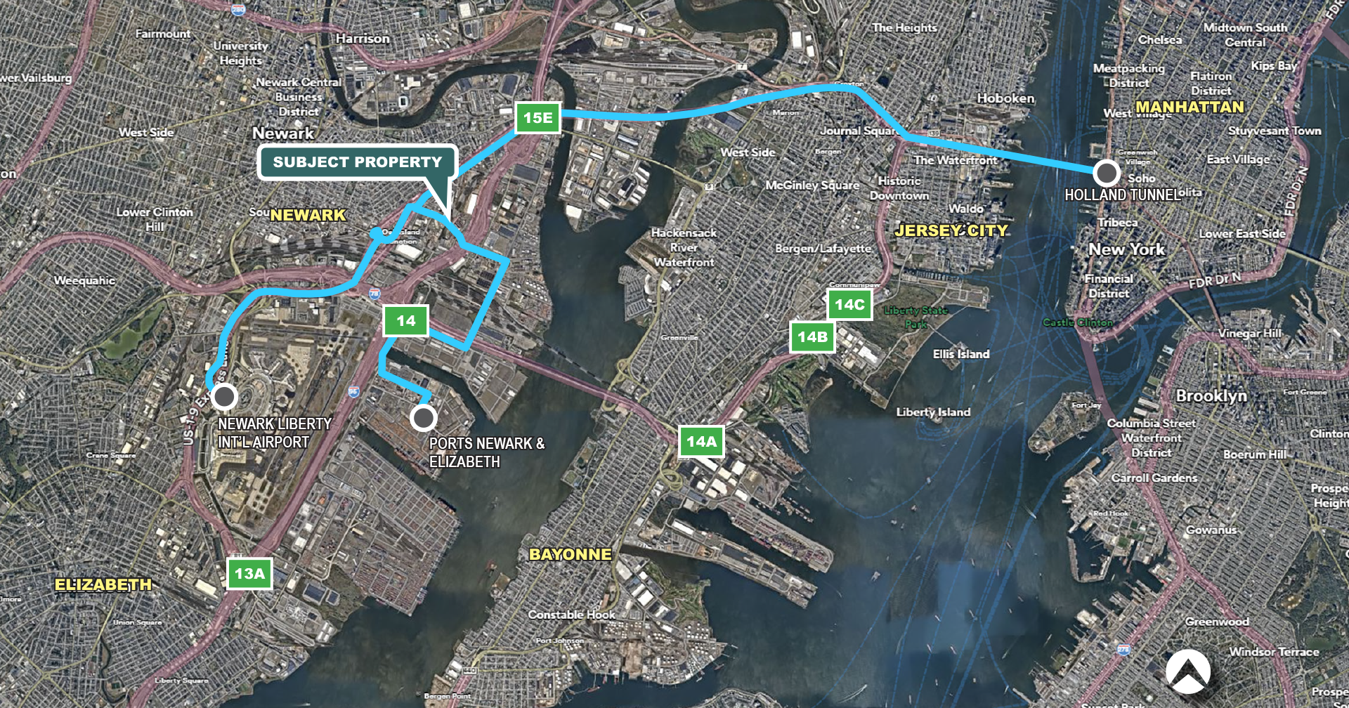 • ± 3 miles from Port Newark Elizabeth and Newark Liberty International Airport